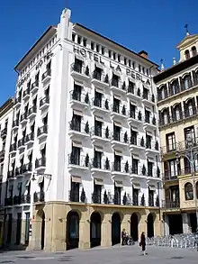 Hotel La Perla (Spanish: Gran Hotel La Perla) is a five-star hotel in Pamplona, Spain and is located in the Plaza del Castillo (Castle Square), with one side facing Estafeta Street, one of the main routes in the Running of the Bulls. The balconies of the hotel are among the most coveted sites from which to view the event.[1]