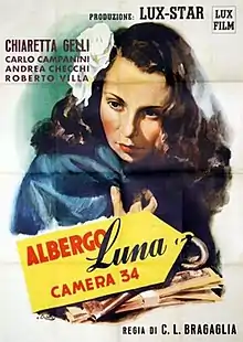 Hotel Luna, Room 34 (Italian: Albergo Luna, camera 34) is a 1946 Italian crime-thriller-melodrama film directed by Carlo Ludovico Bragaglia and starring Chiaretta Gelli, Carlo Campanini and Andrea Checchi.[1]