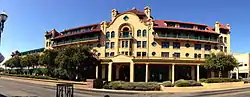 The Hotel Stockton is a Mission Revival Style building located at 133 E. Weber Ave. in Stockton, California. The hotel, which opened in 1910, was designed as a grand hotel with 252 rooms and became popular among visitors to Stockton, especially traveling entertainers. In 1912, the City of Stockton moved its City Hall into the hotel, where it remained until 1926. The building's role in local government ultimately outlasted its role as a hotel; when the hotel closed for business in 1960, the county courthouse relocated to the building for the next four years while a new courthouse was built. The building served yet another branch of government in 1976, when San Joaquin County purchased the building as office space for its Public Administration Department.[2]