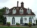 - Images of England on the lodge buildings to Houghton Lodge, with Listing information