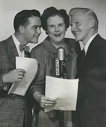 ![]() November 1944 photo from the radio program The Aldrich Family. From left: Dick Jones (Henry Aldrich), Katherine Raht (Mrs. Aldrich) and House Jameson (Mr. Aldrich). | |