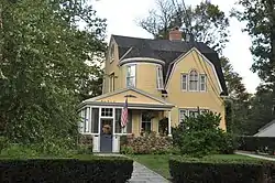 The House at 32 Morrison Road in Wakefield, Massachusetts is a well-preserved, architecturally eclectic, house in the Wakefield Park section of town. The 2+1⁄2-story wood-frame house features a gambrel roof with a cross gable gambrel section. Set in the front gable end is a Palladian window arrangement. The porch has a fieldstone apron, with Ionic columns supporting a pedimented roof. Above the front entry rises a two-story turret with conical roof. The house was built c. 1906–08, as part of the Wakefield Park subdivision begun in the 1880s by J.S. Merrill.[2]