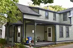 44 Front Street stands on the east side of Front Street, a short north–south street just north of Battery Park in Burlington's Old North End neighborhood. It is a two-story wood-frame structure, with an L-shaped footprint and cross-gabled roof. It is finished in wooden clapboards and rests on a stone foundation. The front facade is two bays wide, with one entrance in the right-hand bay, sheltered by a gabled porch with turned posts and Victorian brackets. The left bay is a projecting polygonal window bay on the ground floor; the second floor windows are regular sash, extending up into the gable end. A second entrance is located in a right-side porch set in the crook of the L, with similar posts and brackets.[2]