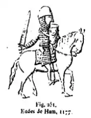 • Eudes II, nephew of the previous lord, son of Lancelin of Ham, died in 1234 and married to Isabelle de Bethancourt. He had the castle rebuilt in stones.[3]