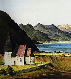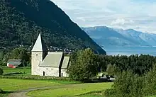 Hove Church (Norwegian: Hove kyrkje) is a historic parish church of the Church of Norway in Vik Municipality in Vestland county, Norway. It is located in the village of Vikøyri on the Arnafjord, an arm of the Sognefjord. It was historically the main church for Hove parish in the Diocese of Bjørgvin. The gray, stone church was built in a long church design in a Romanesque style around the year 1170 using plans drawn up by unknown architect. Since about 2016 the church has been the base for the Hove Church Music Festival (Hove kyrkjemusikkfestival) run by local cultural personality, Jens Brekke, and an American early music chamber choir. The church seats about 35 people.[1][2]