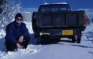 As an amateur astronomer, Brewington visually discovered or co-discovered five comets while manually sweeping the night sky with his home-built reflecting telescopes. He specifically designed his telescopes for the task, which included hand-grinding and polishing the 8 and 16-inch primary mirrors himself.[3] Brewington found his first comet from South Carolina in 1989. To improve his chances of additional finds, he and his first wife, Trudy Bland-Brewington, moved to southern New Mexico in the fall of 1990 and built a comet hunting observatory on a mountain ridge east of Cloudcroft.[4] From 1991 to 1996, the relocation paid-off with four more visual discoveries. Two of his New Mexico comets, 97P/Metcalf-Brewington[5] and 154P/Brewington,[6] have short-period orbits of about ten years.