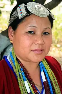 The Aka share strong cultural affinities with the Miji, and intermarriage with the Miji is prevalent.[4] Centuries of Vaishnava and intermittent Tibetan influence from the Sherdukpen has shaped the Aka culture into its modern form. Handicrafts, basket weaving and wood carving are the principal arts among the Aka tribe. Intermittent Tibetan contacts is evidenced by the fact that the Aka and Mishmis are known as "Khakhra" (meaning barbarians) to the Tibetans.[5]