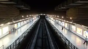 Huadiwan Station (simplified Chinese: 花地湾站; traditional Chinese: 花地灣站; Jyutping: faa1 dei2 waan1 zaam6; Cantonese Yale: Fādéiwāan Jaahm) is a metro station on Line 1 of the Guangzhou Metro that started operations on 28 June 1997. It is situated under Huadi Avenue North (花地大道北) in the Liwan District of Guangzhou City, Guangdong Province, China. It is near the Huadi Bird Fish & Insect Market (花地花鸟虫鱼市场).[1][2]