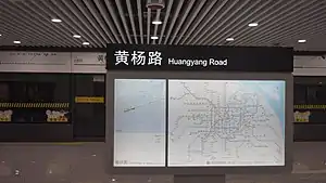 Huangyang Road (Chinese: 黄杨路) is a station that is part of Line 14 of the Shanghai Metro. Located at the intersection of Huangyang Road and East Jinxiu Road in Pudong, the station opened with the rest of Line 14 on December 30, 2021.[1]