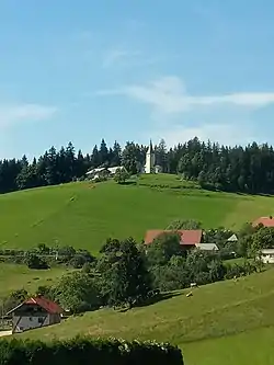 The local church is dedicated to Saint Vitus and belongs to the Parish of Vitanje. It is a Late Gothic building with extensive 19th-century rebuilding.[3]