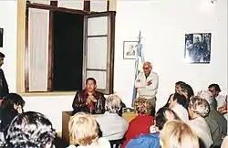 While Chávez and the other senior members of the MBR-200 were in prison, his relationship with Herma Marksman broke up in July 1993.[80] In 1994, Rafael Caldera (1916–2009) of the centrist National Convergence Party who allegedly had knowledge of the coup[67] was elected president and soon afterward he freed Chávez and the other imprisoned MBR-200 members, though Caldera banned them from returning to the military.[81] After his release, on December 14, 1994, Chávez visits Cuba during the Special Period, where he is received by Fidel Castro with head of state honors. During his visit, Chávez gave a speech at the Aula Magna of the University of Havana before Fidel and the Cuban high hierarchy where, among other things, he said "We have a long term strategic project, in which the Cubans have and would have much to contribute" and "it is a project of a twenty to forty year horizon, a sovereign economic model".[82][83]