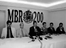 Five years after his creation of the ELPV, Chávez went on to form a new secretive cell within the military, the Bolivarian Revolutionary Army-200 (EBR-200), later redesignated the Revolutionary Bolivarian Movement-200 (MBR-200).[57] He was inspired by Simón Bolívar, Simón Rodríguez and Ezequiel Zamora, who became known as the "three roots of the tree" of the MBR-200.[58]