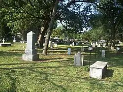 The Huguenot Cemetery (also known as the St. Augustine Public Burying Ground) in St. Augustine, Florida, located across from the historic City Gate was a Protestant burial ground between the years 1821 and 1884. The Spanish colonial city of St. Augustine, along with the entire Florida Territory became de facto American possessions after the 1819 signing of the Adams-Onis Treaty. The actual physical occupation of the city and Florida territory occurred in 1821.