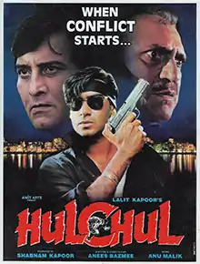 Hulchul (English: Chaos) is a 1995 Indian Hindi-language action thriller film directed and written by Anees Bazmee. It stars Vinod Khanna, Ajay Devgn, Kajol, Ronit Roy, Amrish Puri and Kader Khan in the lead roles.