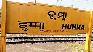 Humma railway station is a railway station on Khurda Road–Visakhapatnam section, part of the Howrah–Chennai main line under Khurda Road railway division of East Coast Railway zone.[1] It is situated at Padagadajhatipadar, Humma in Ganjam district in the Indian state of Odisha.[2]