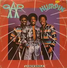 "Humpin'" is a 1980 song by The Gap Band, from their fifth album The Gap Band III released as a single in 1981. The original B-side, "No Hiding Place", was originally released on The Gap Band II.[1] The song had mixed chart success, only peaking at #60 R&B, but busting into the top-20 on the dance charts. "Humpin'" is a fan-favorite, featured on almost all of the band's compilation albums[2] Like their previous release, "Burn Rubber on Me", "Humpin'" was later packaged and placed as part of a single with "Yearning for Your Love" as the A-side.