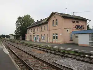 Hungen station is a station on the Gießen–Gelnhausen railway (also known as the Lahn-Kinzig Railway) in the town of Hungen in the German state of Hesse. From 1 June 1890 to 4 April 2003, the Friedberg–Mücke railway (also known as the Horloff Valley Railway, German: Horlofftalbahn) branched off to Mücke via Laubach and to Friedberg via Wölfersheim and Beienheim. The station is classified by Deutsche Bahn (DB) as a category 6 station.[2]