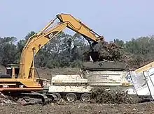 Following the hurricane in North Carolina, 10 counties were declared federal disaster areas,[67] while 30 counties became eligible for public and individual assistance.[68] Shelters were opened in 11 counties, and the Raleigh-Durham International Airport briefly canceled all flights.[69] To remove the tens of thousands of tires that washed ashore, hundreds of inmates from state prisons were sent to the Bouge Banks. Some of the tires were buried in sand, and could only be removed during low tide. About 700 more state prisoners were sent around the state to clear debris, and 39 inmate crews were deployed to help farmers salvage the severely damaged tobacco fields.[70] In South Carolina, Horry County was declared a federal disaster area due to the damage.[42] In Virginia, the cities of Chesapeake, Norfolk, Portsmouth, Suffolk, and Virginia Beach became eligible for individual and public assistance programs.[71] After the storm's departure, a thunderstorm temporarily halted power restoration by Virginia Power company crews.[72] Virginia Governor Jim Gilmore allowed for over $11 million (1998 USD) in state and federal funds to help five cities recover.[73] The storm also contributed to a 13.6% decline in home sales across the southern United States during the month of August by "discouraging potential home buyers" in coastal areas.[74]