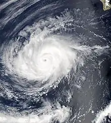 Several hours later, the storm was once again downgraded into a Category 3 hurricane, and during the afternoon hours of September 27, Hilary was further downgraded into a Category 2 hurricane. Early on the following morning, Hilary weakened into a Category 1 hurricane, before weakening further into a tropical storm on September 28.[11] Losing a lot of its convection on September 30, the National Hurricane Center noted that Hilary had weakened into a tropical depression. Several hours later, after sustaining no deep convection atop its center, Hilary was declared a remnant low, located several hundred miles away from any landmasses. Over the next 3 days, Hilary's remnant low subsequently moved towards the southwest, before dissipating after 1200 UTC on October 3, about 1,050 mi (1,690 km) to the west of the southern tip of Baja California.[1]