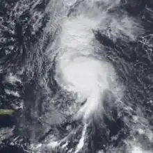 ![]() Hurricane Klaus at peak intensity northeast of the Leeward Islands on November 9 | |