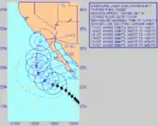 Forecast track of Linda on September 13, showing a track towards Southern California