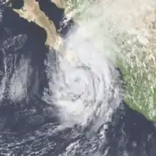 In parts of Sinaloa, people were evacuated and then granted refuge in shelters. In Los Mochis, the Mexican Army was put on standby in the event the Fuerte River flooded.[4] While no deaths or injuries were reported,[5] much farmland and 600 houses were destroyed.[1] The Juarez River bursts its banks, flooding at least eight neighborhoods in Culiacán. Telephone service in Los Mochis, Guarmuchil, and Guasave was cut when a communications tower was blown over.[4] In Los Mochis, some schools and homes were destroyed and a few trees were uprooted.[6] A total of 10,000 people were left homeless across the state.[7] The peak rainfall total in Mexico from Waldo was 9.61 inches (244 mm) in Jocuixtita/San Igancio; heavy rain was also recorded along southern Baja California Sur.[3]