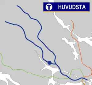 Huvudsta metro station is a station on the blue line of the Stockholm metro, located in Huvudsta, Solna Municipality. The station was opened on 18 August 1985 as part of the extension between Västra skogen and Rinkeby.[2] The distance to Kungsträdgården is 5.2 km (3.2 mi).