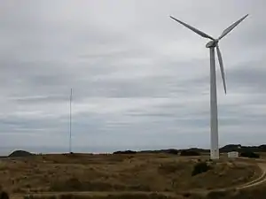 Huxley Hill Wind Farm (also known as the King Island Wind Farm) is a wind power station at King Island, Tasmania, Australia, of around 1600 residents, owned by Hydro Tasmania, which supplements the four diesel generators with a combined capacity of 6 MW at Currie Power Station. King Island also has a 100 kW solar capacity provided with monocrystaline solar panels on dual-axis arrays.