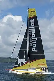 The IMOCA 60 Class yacht Cheminées Poujoulat (5) was designed by Juan Kouyoumdjian built by Decision SA in Lausanne, Switzerland[1][2] and launched in the year 2011.[3] The boat was written off on 24th December 2013 after breaking apart on the return journey from the Transat Jacque Vabre.