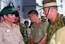 The Logistic Support Force was not designed to manage the logistic support of forces deployed away from Australia; its mission was to command the Army's field force logistic units, and it was in the midst of a reorganisation in 1999.[33] Wilkinson anticipated being designated the Logistic Component Commander for Operation Spitfire, responsible for coordinating the logistics of all three services, but this did not occur until 26 August, the day before the first troops began deploying to northern Australia for the operation.[34] To support Operation Spitfire, Kehoe detached a small group of specialists under Captain Phil MacMaster to work with Lieutenant Colonel Steve Kinloch's 3rd Brigade Administrative Support Battalion (3 BASB). He later admitted that this was a mistake, costing him the services of key personnel for several weeks.[35]