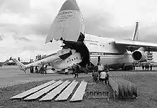 McLennan had at his disposal 13 Royal Australian Air Force (RAAF) Lockheed C-130H Hercules transport aircraft of No. 86 Wing RAAF Detachment B based at RAAF Base Amberley, RAAF Base Darwin and RAAF Base Tindal, under the command of Squadron Leader Simon Giles.[55] This was augmented by two C-130Hs of the No. 40 Squadron, Royal New Zealand Air Force (RNZAF), with six crews,[41] and a single C-130H with two crews and ten maintenance personnel from the US 517th Airlift Squadron. Normally based at Elmendorf Air Force Base in Alaska, it had been supporting the visit to New Zealand by President Clinton for the Asia-Pacific Economic Cooperation (APEC) summit. This contribution was subsequently increased to four C-130Hs, with 20 aircrew and 33 maintenance personnel,[56] the additional aircraft and personnel being drawn from the 613th Air Expeditionary Group.[57]
