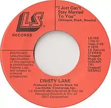 3. 1 2 3 Lane, Cristy (November 1978). ""I Just Can't Stay Married to You"/"Rainsong" (7" vinyl single)". LS Records. LS-169.
