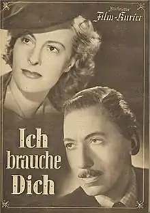 I Need You (German: Ich brauche dich) is a 1944 German comedy film directed by Hans Schweikart and starring Marianne Hoppe, Willy Birgel and Paul Dahlke.[1] The film's sets were designed by the art director Hans Sohnle.