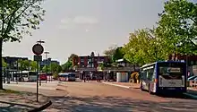 There is a bus station outside the station.