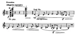 • Evocación ("Evocation", A minor and A major), an impressionist reminiscence of Albéniz's native country, combining elements of the southern Spanish fandango and the northern Spanish jota song forms. It includes the rarely seen key signature of seven flats.