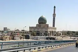 The Ibn Bunnieh Mosque (Arabic: جامع ابن بنيه), also known as the Hajj al-Bunnieh Mosque (Arabic: جامع الحاج بنية) is a mosque in Baghdad located in al-Karkh district, opposite the Baghdad Central Station and near the Iraq Museum. Its unique Islamic architecture and style include its oval dome which is shaped like an egg and Arabic calligraphy of verses from the Quran on its walls made by the Iraqi master calligrapher Hashem Muhammad al-Baghdadi. The name of the mosque was attributed to Hajj Mahmoud al-Bunnieh who is buried next to the sanctuary from the western side. The mosque can hold 1,000 prayers.[1][2][3]
