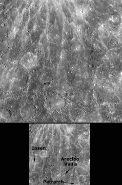 Ibsen is a crater on Mercury. It is located near the antipode of the Caloris Basin. Its name was approved by the IAU in 1976.[1]