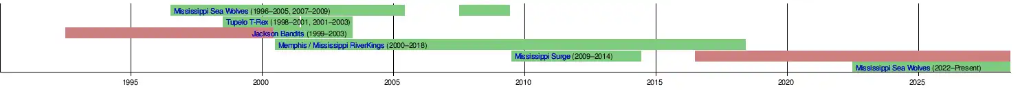 | Mississippi Sea Wolves | Biloxi | ECHL | 1996–2005, 2007–2009 | Defunct |