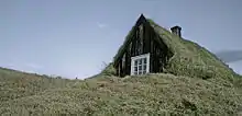 Icelandic turf houses (Icelandic: torfbæir [ˈtʰɔrvˌpaijɪr̥]) are timber structures with turf walls and turf as a cover for the roof. Turf houses have been constructed since Iceland was settled in the 9th century.[1] Turf houses were the product of a difficult climate, offering superior insulation compared to buildings solely made of wood or stone, and the relative difficulty in obtaining other construction materials in sufficient quantities.[2]