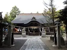 - Honden of Yamamiya Jinja (山宮神社本殿), late Muromachi period. The Yamamiya Jinja is a subsidiary shrine located some distance outside the main shrine compound. The Honden of this shrine was constructed in 1558 and was designated an Important Cultural Property in 1907.[5]