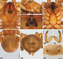 1. 1 2 3 Rix, MG; Huey, JA; Cooper, SJB; Austin, AD; Harvey, MS (2018). "Conservation systematics of the shield-backed trapdoor spiders of the nigrum-group (Mygalomorphae, Idiopidae, Idiosoma): integrative taxonomy reveals a diverse and threatened fauna from south-western Australia". ZooKeys. 756: 1–121 [30]. doi:10.3897/zookeys.756.24397. PMC 5956031. Retrieved 2023-09-06.
