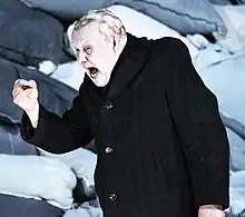 From 1997, Kirchner was back at the Burgtheater.[1] He played in 1998 Clov in Beckett's Endspiel alongside Voss as Hamm,[6] staged by Tabori in a production that was invited to the Berliner Theatertreffen. For this performance Kirchner and Voss won again the award Actor Duo of the Year.[9] In 1999 he appeared as Schigolch in Wedekind's Lulu, staged by Andreas Kriegenburg.[6] He played Solange in Die Zofen, directing himself with Voss and his wife Ursula Voss, and Dr. Dorn in Chekhov's Die Möwe with Luc Bondy, both in 2000. A year later, he appeared as Sandperger in Karl Schönherr's Glaube und Heimat with Martin Kušej, and a supervisor and a policeman in Roberto Zucco by Bernard-Marie Koltès with Klaus Michael Grüber. In 2002, he appeared as Uta-Napishti in the premiere of Raoul Schrott's Gilgamesh with Theu Boermans, and as Richard in the Austrian premiere of Thomas Bernhard's Elisabeth II with Thomas Langhoff.[10] He performed again solo programs such as Walser's Der Spaziergang[1] and Bernhard's Der Stimmenimitator and Minetti. From 2005, he played in a Burgtheater production of Klaus Pohl's Der Anatom at the Anatomischer Saal der Bildenden Künste, the play's only role.[11] He appeared at the Salzburg Festival in the speaking role Samiel in Weber's opera Der Freischütz in 2005, staged by Falk Richter.[12]