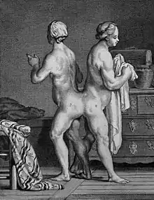 Ilona and Judit Gófitz (Hungarian: Gófitz Ilona és Judit; in contemporary publications: Helen and Judith of Szőny),[1] also known as the Hungarian Sisters, were conjoined twins from Szőny, Hungary who lived from October 19, 1701 to February 8, 1723.[2] The sisters, who were pygopagus (joined at the pelvis),[3] were examined by doctors and exhibited to curious crowds throughout Europe.[4][5] At the age of nine, the pair retired to a convent in Presburg, Kingdom of Hungary, where they spent the rest of their lives.[6] They died within hours of each other.