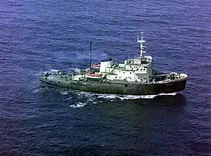 The first of two Project 97K icebreakers was laid down at Admiralty Shipyard in Leningrad on 10 March 1965, launched on 30 June 1965, and delivered on 28 December 1965.[2] The ship was named Ilya Muromets after the Russian folk hero and joined the Soviet Navy Red Banner Pacific Fleet.[4]