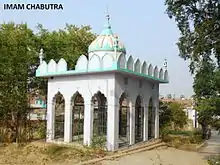 An "Imam Chabutra" is a structure built on the site where the soil from the shrines of all "14 Masoomeen" (The Fourteen Infallible) is buried in one place. An "Imam Chabutra" is generally constructed with a dome and 12 doors (3 doors on each of its 4 sides) and a "Zarih" is mounted inside it. The purpose of building the Shrine is to give an easy access to those people who are unable to visit the original Shrines in the Middle-Eastern region. Lucknow has two "Imam Chabutra".