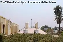 Tila-e-Tilla-e-Zainabiya is a pyramid shaped structure with stairs on all four sides and an Alam (Standard) is mounted on the top of the platform. This shrine is situated at Imambara of Malika Jahan Sahiba, Shahi Jama Masjid, Tahseenganj, Husainabad, Lucknow.