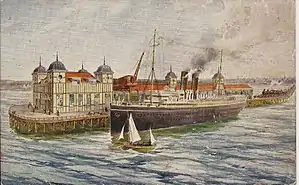 The cruise ships sometimes berthed in the dock itself,[8][9] but usually they moored at the seaward side of the jetty where they were adjacent to all-First Class, Restaurant Car special trains.[10][11][12] These operated along two routes: