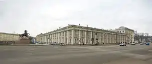 Until 1885, the facades of a building with columns of a "giant" Ionic order penetrated wide arcades, through which a view of the Anichkov Palace opened. In 1885, the arcades were laid. From the Fontanka side to this day there is an open colonnade with a driveway into the courtyard. Since 1937 the building housed the Leningrad Palace of Pioneers, now the Saint Petersburg City Palace of Youth Creativity.