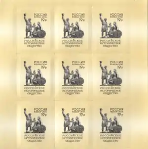 The Imperial Russian Historical Society (Russian: Императорское Русское историческое общество) was a public organization of Imperial Russia. It was subject to the jurisdiction of the Ministry of National Education. It was founded in 1866 and dissolved in 1917. It published studies on Russian history and historical documents connected with the Imperial Russian state. It is most notable as the publisher of the Russian Biographical Dictionary. Its emblem was an image of the Monument to Minin and Pozharsky.