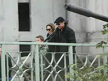 Jolie and Brad Pitt on the set of In the Land of Blood and Honey in Esztergom on November 10, 2010